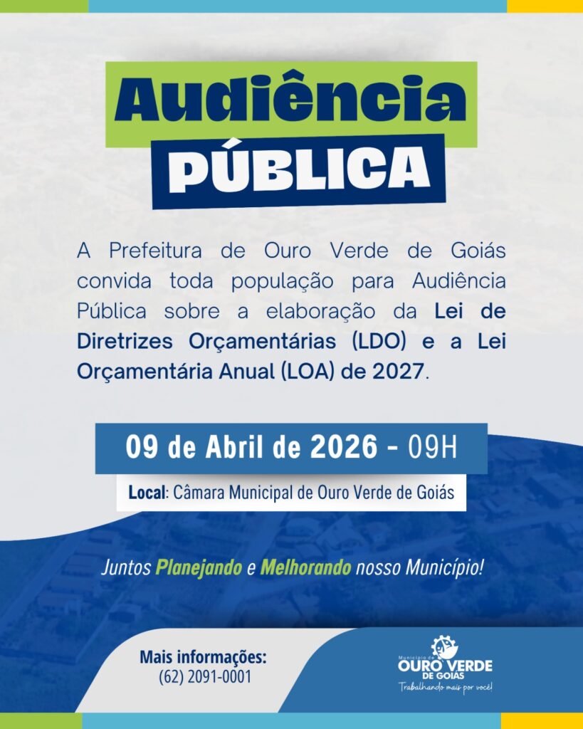 A Prefeitura convida toda a população a contribuir com sugestões para a elaboração da Lei de Diretrizes Orçamentárias (LDO) e da Lei Orçamentária Anual (LOA) para o exercício de 2027.
